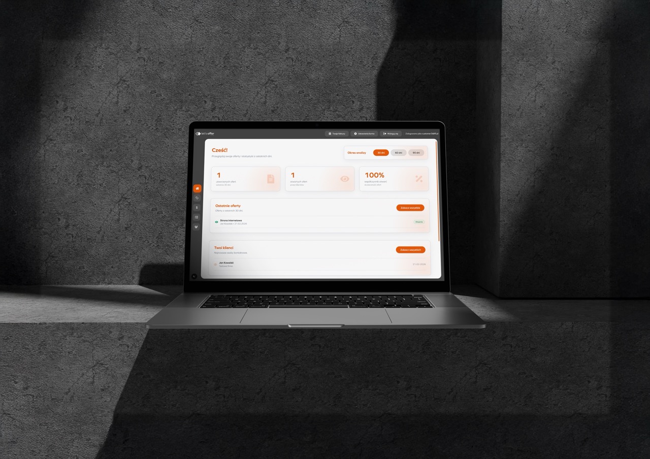 Naszym Klientom udostępniamy autorskie narzędzie do generowania ofert Let's Offer oraz system CRM ContractorFlow, który pozwala na zarządzanie szansami sprzedaży.